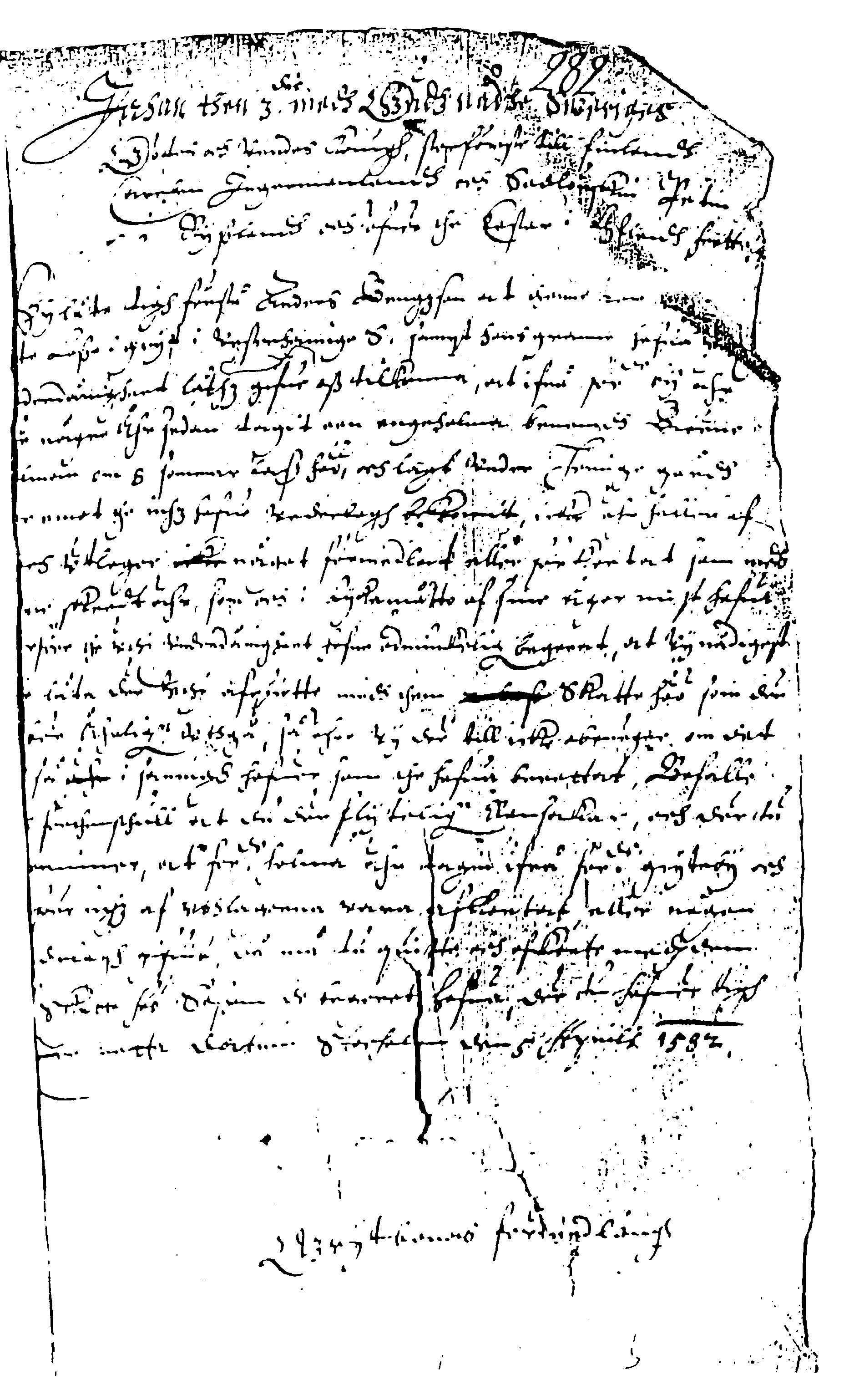 ”Johan then 3die medh Gudz nåde Sweriges Götes och Wendes Konungh, storförste till finlandh Carelen Ingermanlandh och Sodlönskin Petin i Rysslandh och öfuer the Ester i Lijfland feelt.