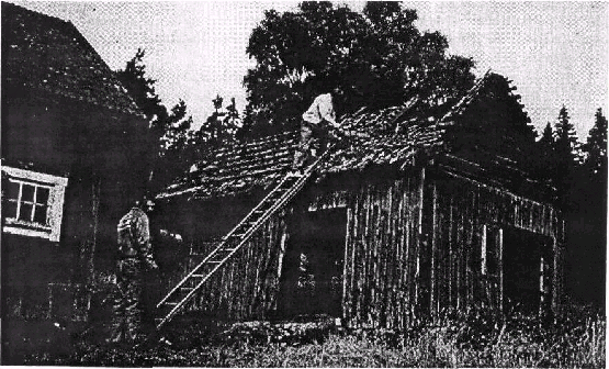 Foto från 1996 då stallet revs. En del av timret användes sedan till renoveringen av en sjöbod från Älvsnabben som nu finns på Grytholmens friluftsmuseum.