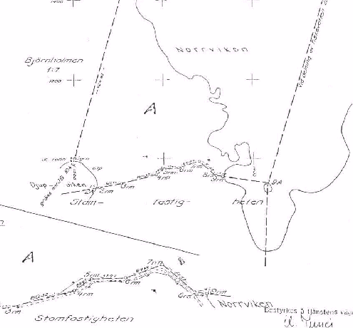 Råmärken utsattes och en karta, se nästa sida, upprättades. Till köpekontraktet fogades ett tillägg där köpare och säljare förklarade att köpekontraktet avsåg just det område som avstyckats.